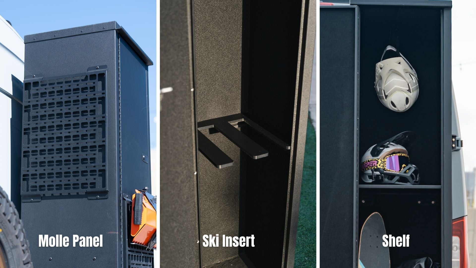 Sandy Vans has the ultimate accessory for your Sprinter adventure van: The Boost Box, one of the LARGEST rear storage lockers on the market. This exterior storage box has a sleek and stylish design, with a black finish that will make your van look like a million bucks. The door opens and closes with ease, so you can load/unload your gear without breaking a sweat. The locker's carpeted interior will keep your equipment in mint condition, so you can focus on the activity at hand instead of worrying about your gear.